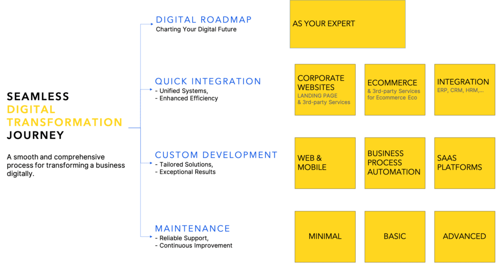 A smooth and comprehensive process for transforming a business digitally.